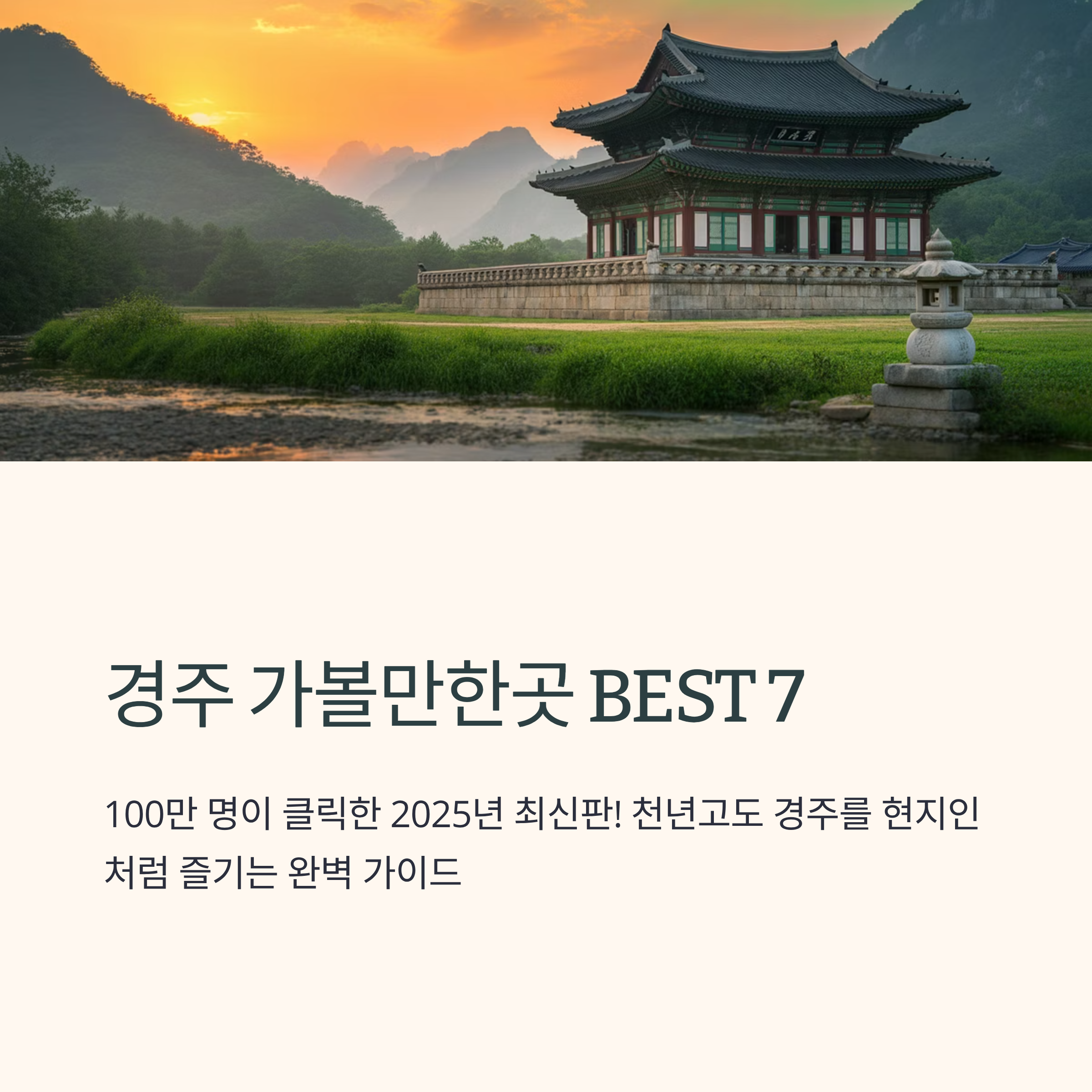 안녕하세요! '지붕 없는 박물관' 경주 여행, 어디부터 가야 할지 막막하셨나요? 수학여행의 추억은 잠시 접어두세요. 오늘, 여러분의 경주 여행을 평생 잊지 못할 인생 여행으로 만들어 줄 평오니의 2025년 최신판 경주 가볼만한곳 BEST 7을 공개합니다.